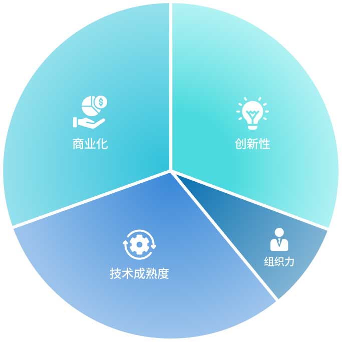 项目将依据以下四项核心指标进行评审:创新性(30%)、商业化(30%)、技术成熟度(30%)和组织力(10%)。